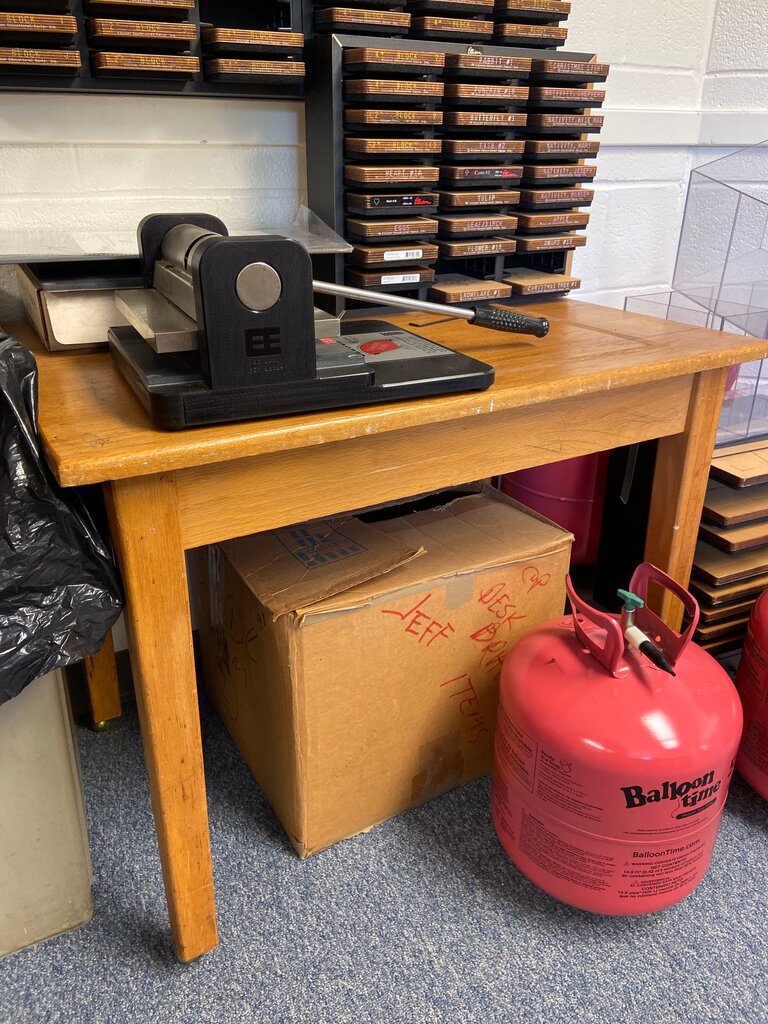 A used Balloon Time helium tank for inflating balloons, perfect for parties and events.