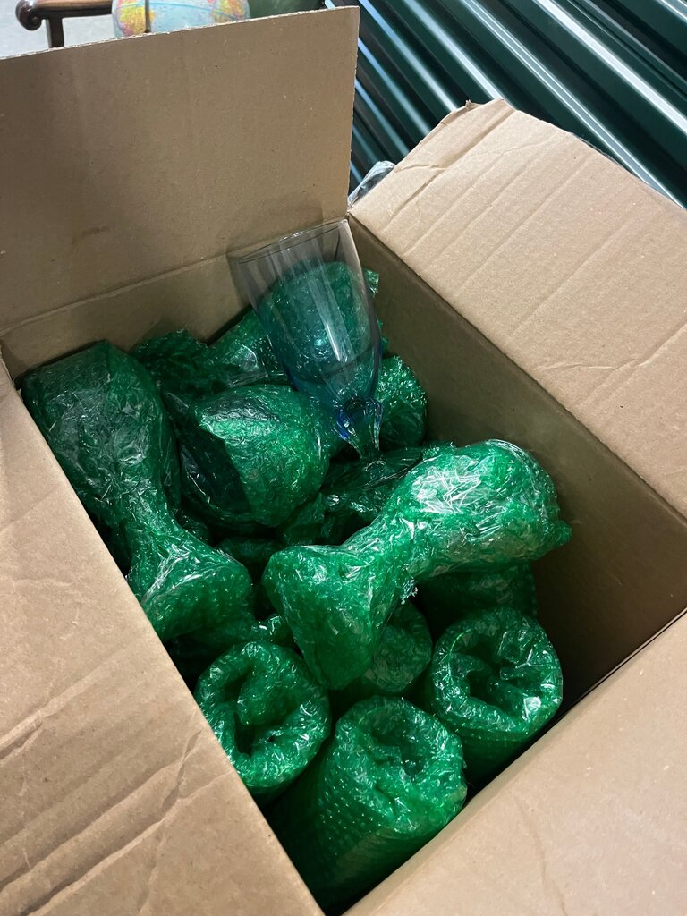 This unique blue and green decorative glass goblet features a beautiful swirl pattern and is perfect for display or use.