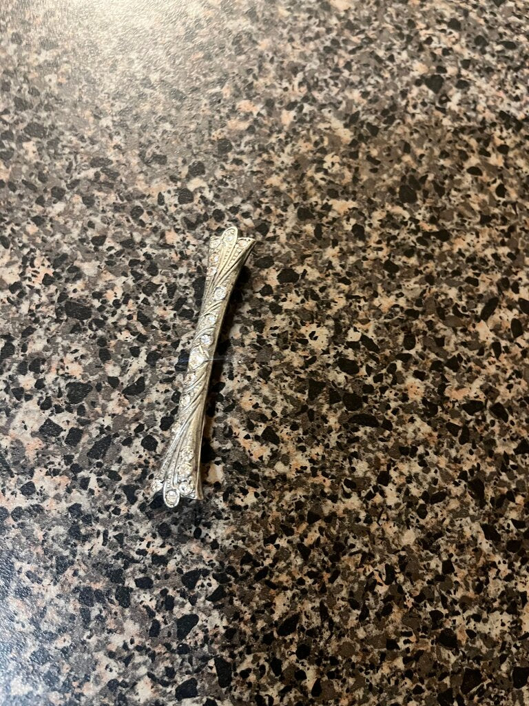 A beautifully designed decorative silver brooch, perfect for formal or casual wear. Its elegant design adds a touch of charm to any outfit.