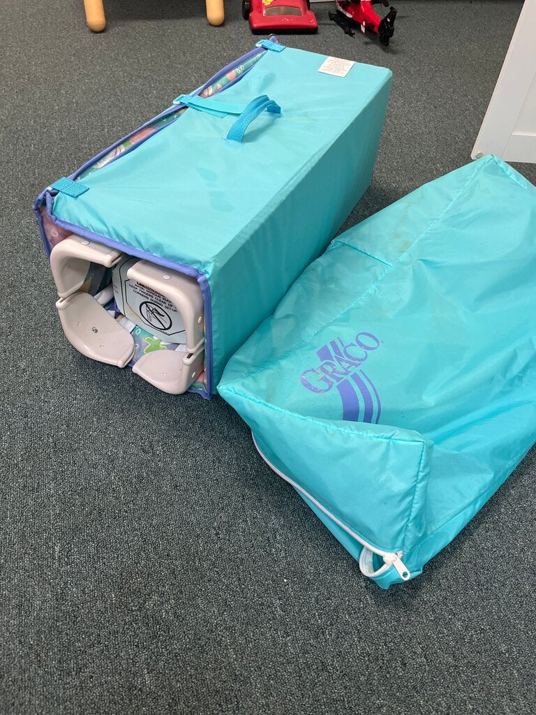 A versatile and portable playard by Graco, perfect for infants, featuring a carrying bag for easy transport.