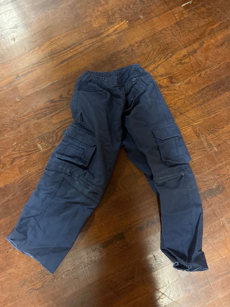 Kids' navy cargo pants with multiple pockets, perfect for school or outdoor play.
