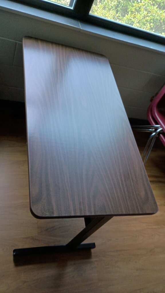 A sturdy brown folding table, perfect for various uses like parties, picnics, or additional workspace. Compact and easy to store.