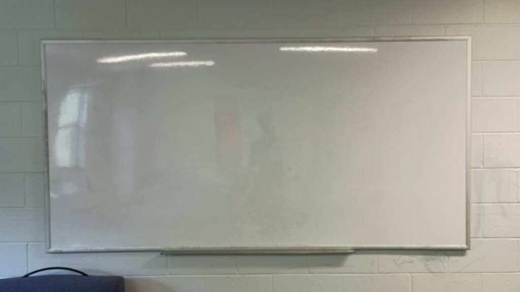 A used dry erase whiteboard suitable for classrooms or offices. Ideal for presentations, brainstorming sessions, and displaying information. Comes with mounting hardware.