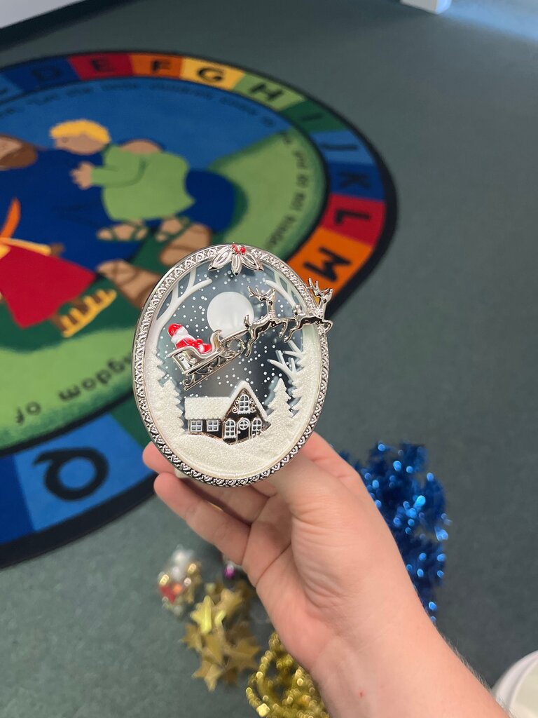 A festive Christmas snow globe featuring Santa Claus with his reindeer in a winter landscape. Perfect for holiday decoration or as a gift.