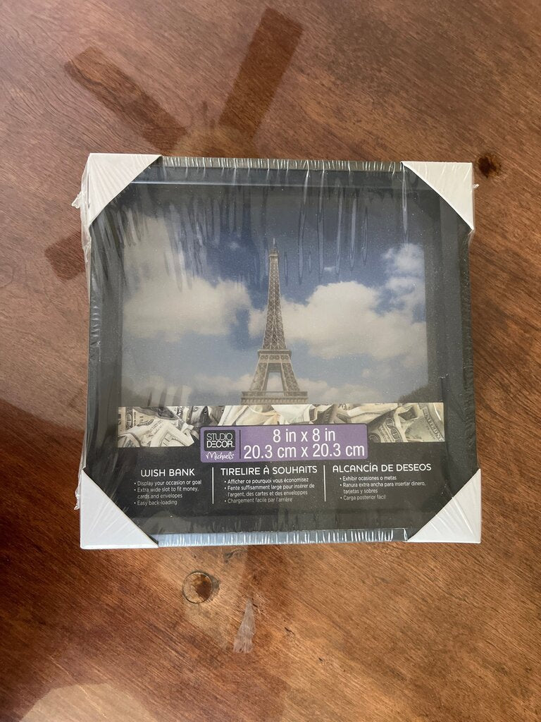 A stylish black wish bank featuring the Eiffel Tower design. Perfect for displaying your goals or treasures, allowing easy access and loading for money, cards, and envelopes.
